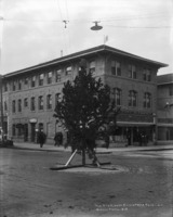 828 "The Red Cross Christmas Tree, 1917;" evergreen tree in the intersection of Main and Shoshone Streets; view of Perrine Hotel; also visible Lindsey and Smith Real Estate; Majestic Pharmacy