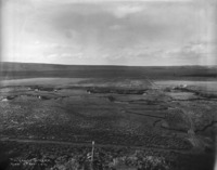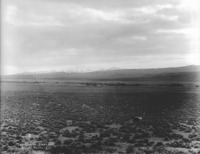 817 "The Great Expanse;" two horses and a wagon among the sagebrush desert in the foreground; stream and trees in the middle ground, mountains in the background