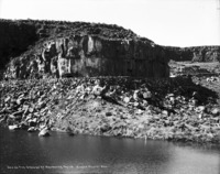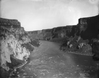825 "Volcanic Masonry;" Snake River immediately below the Twin Falls. People standing in fenced off area in foreground
