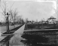 792 "Showing Cluster Lighting System. Twin Falls, Idaho;" view of City Park along Shoshone St, light fixtures, band stand (gazebo). Houses along 6th Ave E, 6th Ave N, and Shoshone St are visible in background