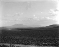 771 "Through the Desert;" line of automobiles on a dirt road through an area of sagebrush
