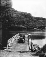 779 "A Haynes Can Do Everything But Swim;" automobile with people on the ferry at Shoshone Falls.