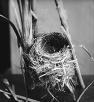 PC-2403 A studio portrait of a bird's nest in cattails.