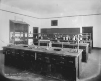 655 "High School Chemistry;" empty classroom, with lab apparatus set up.