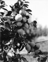 627 "Yellow Transparent Apples. Five Year Old Trees. Murtaugh Orchard, Twin Falls, Idaho;" fruit tree branch laden with fruit.