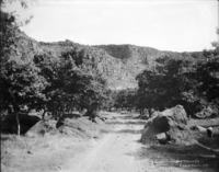 525 "The Blue Lakes Orchard;" road running through orchard on the Perrine Ranch in the Snake River Canyon.