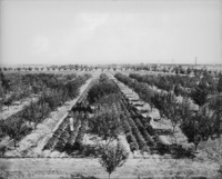 508 "On C. Harder's Five Acre Tract;" Two women and two men working in the row crops between fruit trees.
