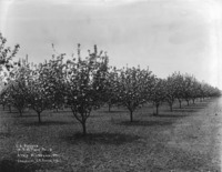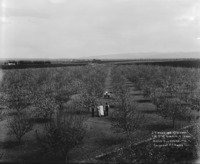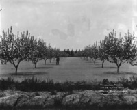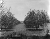 495 "J.F. Henning Orchard. 1 mile south of Kimberly, Idaho. Apple Blossoms. Copyright 1912;" two long rows of fruit trees