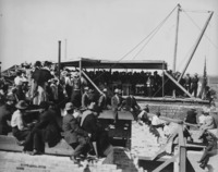 470 "Breaking Sod for $150,000 Court House - 1908;" crowd of people gathered at the construction site of the County Court House, with many teams of horses.