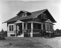 480 "A Country Home in Idaho. P.B. Johnson Ranch;" A man and a woman on the porch of a house/home, with four children in a pony cart.