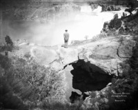 474 "Natural Bridge. Shoshone Falls;" man standing atop a rock formation overlooking the falls.