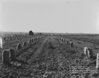 336 "$500 prize winner - 1910. 645 bushels to the acre. L.A. Snyder farm, 1 mile east of Twin Falls, Idaho;" packed potato sacks standing in field