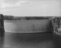 342 "Salmon Dam;" a look at the dam during construction, or shortly after completion in 1910.