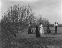 345 "5 year old Apple Trees, S.F. Willard Ranch, 1 1/2 miles north of Twin Falls, Idaho:" Four women and a man holding child in orchard