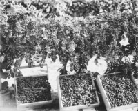 208 "Grapes, Perrine's Ranch, Twin Falls, Idaho;" three boxes of grapes below vines.