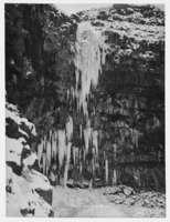 72 "Perrine Coulee in Winter;" large icicles on the canyon wall.
