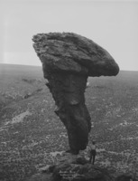 83 "Balance Rock; Copyright 1908; Twin Falls, Idaho;" Clarence Bisbee standing at the base of Balanced Rock.