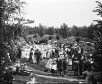 PC-2338 "The May Festival;" children gather near a maypole, with a crowd of people watching in City Park.