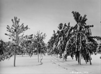 PC-2331 "The May Poles;" two groups of young women dressed in white at maypoles, with a crowd of people watching in City Park on May Day.