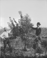 005 "Three Year Old Apple Tree (222 Apples), Grown by Hugh Reed, One Mile South of Twin Falls, Idaho;" two men holding tree branches.