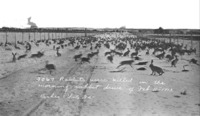 PC-2299 "3067 Rabbits were killed in the morning rabbit drive of February 11, 1913;" rabbit drive, with hundreds of rabbits in the foreground being pushed down a lane by a large group of hunters in the background