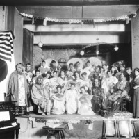 - "First Opera Given in Twin Falls, February 22-23, 1912, Home Talent. 'Mikado;'" cast in costumes standing on a stage.