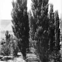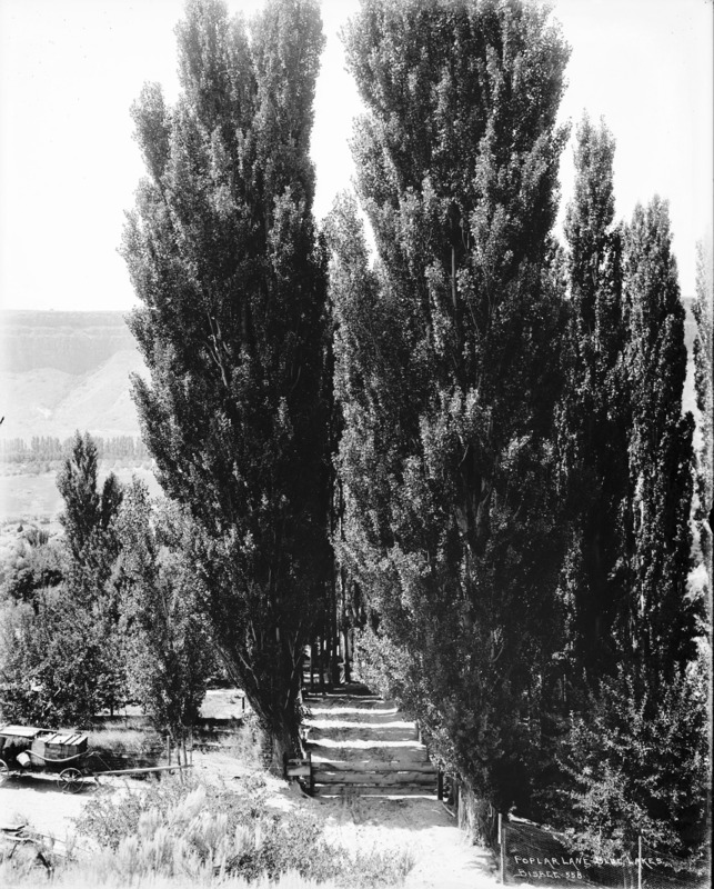 - "Poplar Lane - Blue Lakes;" A grove of poplar trees, located near Blue Lakes in the Snake River Canyon. Laden wagon on left