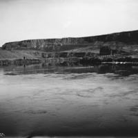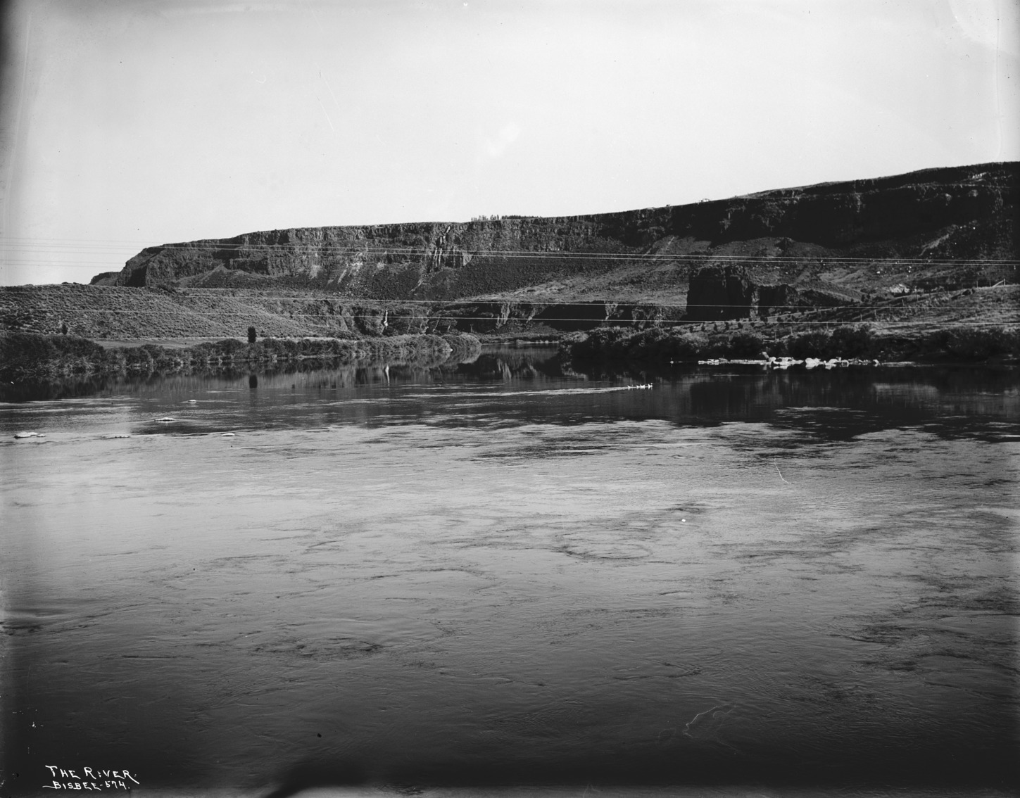 - "The River;" view of the Snake River, up river from the first Perrine Bridge, with power lines and geese.
