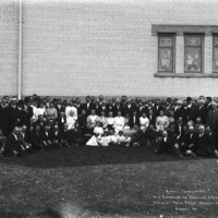 - "Annual Conference. Methodist-Episcopal Churches of Idaho and eastern Oregon. Held in Twin Falls, August 1912;" group of people at the side of the Methodist Church