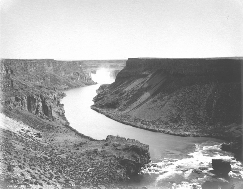 - "The Winding River;" the Snake River near Pillar Falls, looking east to the Shoshone Falls.