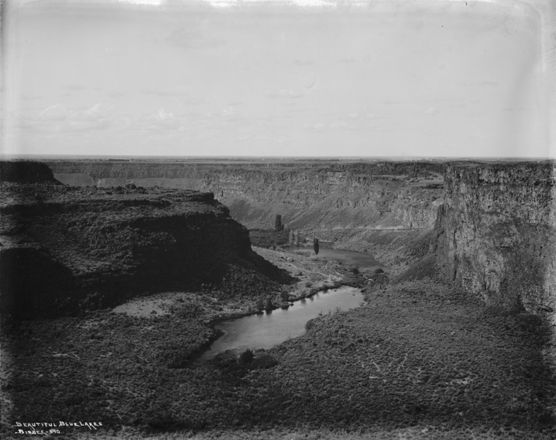 - "Beautiful Blue Lakes;" distant view of the Blue Lakes taken from the north side of the canyon.