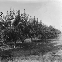 - "L.A. Snyder Orchard;" long row of fruit trees.