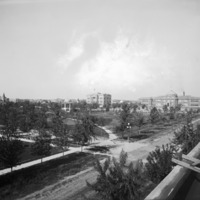 - "Twin Falls - The Magic City;" overview of the City Park and surrounding buildings, including the Methodist Church, Twin Falls County Court House, Justamere Inn, and Twin Falls High School. The gazebo (band stand) in the Park is also seen.