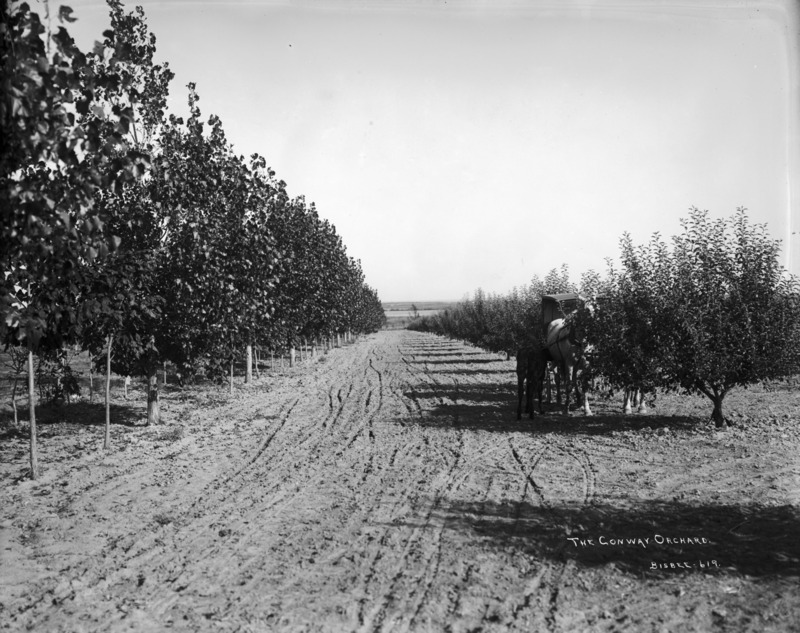 - "The Conway Orchard;" team of horses, between rows of fruit tree.