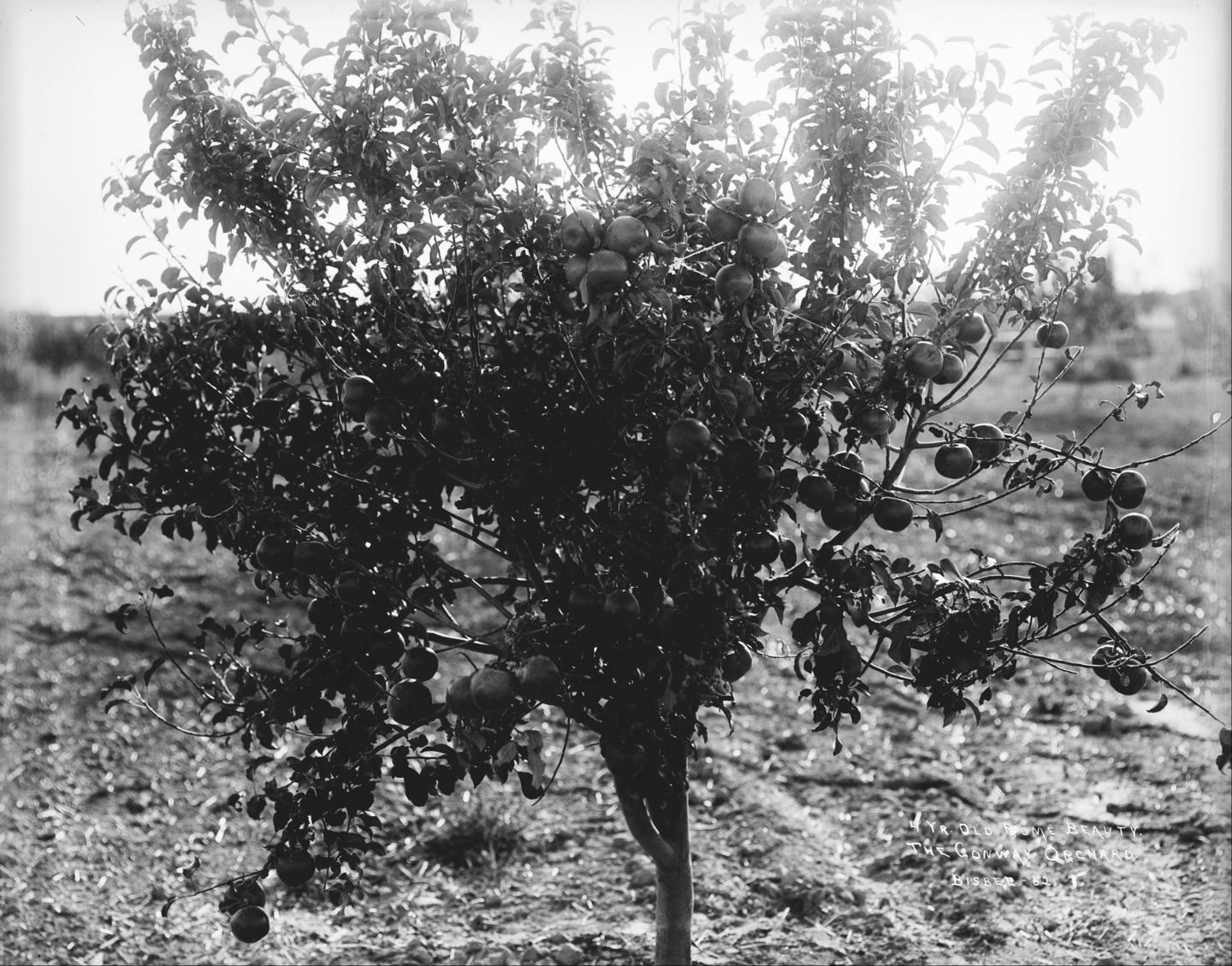 - "4 Year Old Rome Beauty. The Conway Orchard;" small fruit tree.