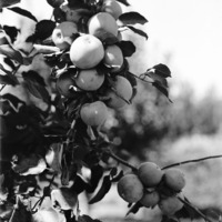 - "Yellow Transparent Apples. Five Year Old Trees. Murtaugh Orchard, Twin Falls, Idaho;" fruit tree branch laden with fruit.