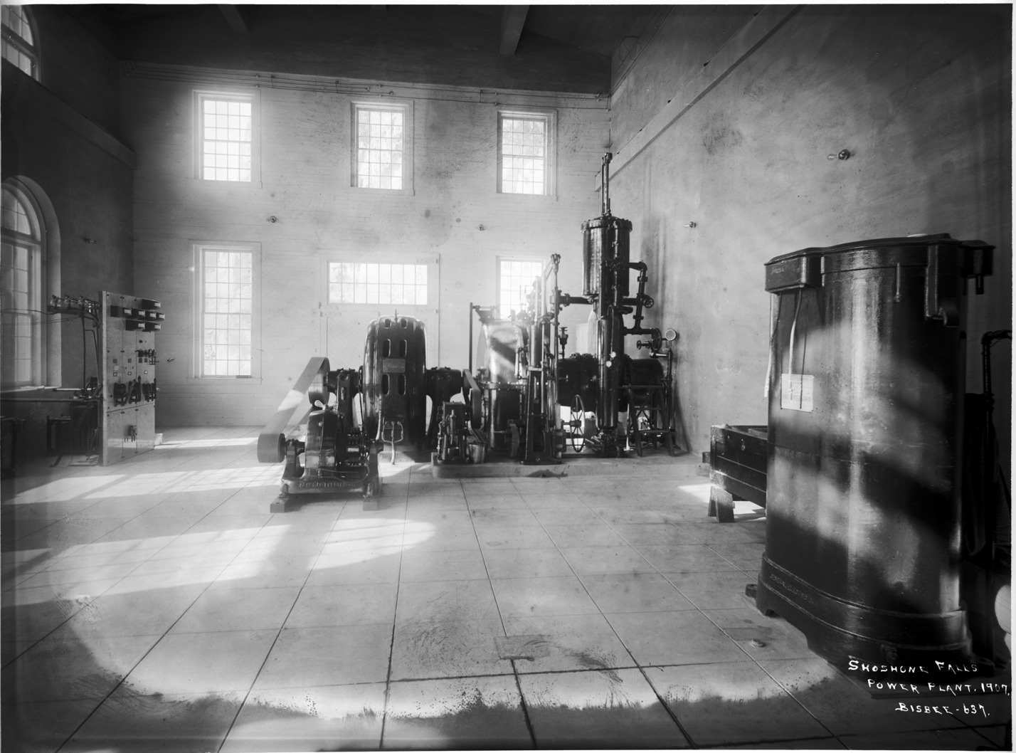 - "Shoshone Falls Power Plant, 1907;" interior view of the power plant.