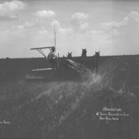 - "Harvesting. W. Smith Ranch, 2 1/2 miles east of Twin Falls, Idaho;" Man with a three-horse reaper-binder in a grain field.
