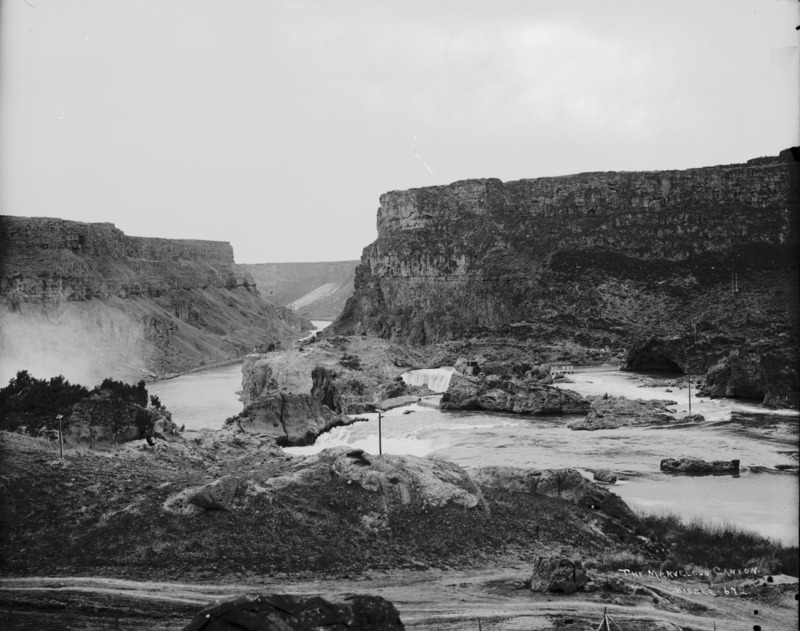 - "The Marvelous Canyon;" The Shoshone Falls from above and to the east, showing the road to the ferry, with a large mist cloud.
