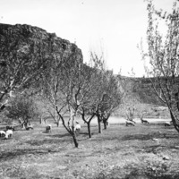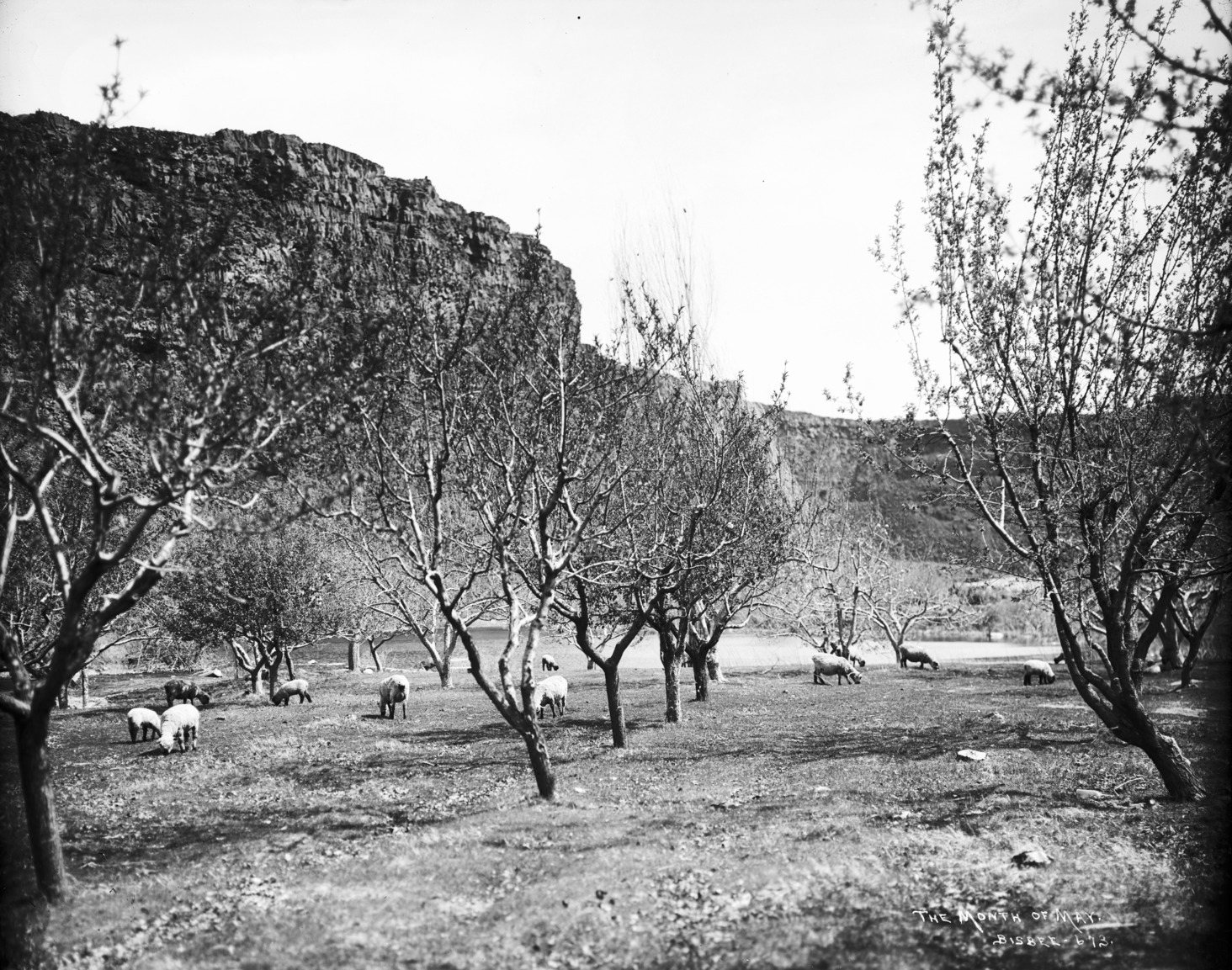 - "The Month of May;" sheep grazing beneath blossoming trees in the Snake River Canyon.