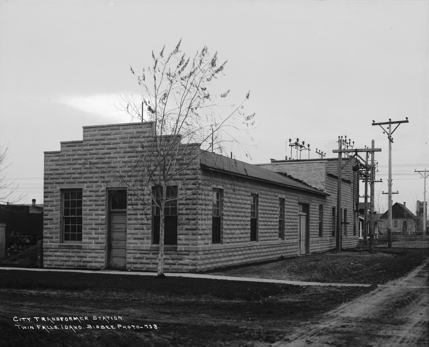 - "City Transformer Station. Twin Falls, Idaho;" stone building connected to several electrical poles.