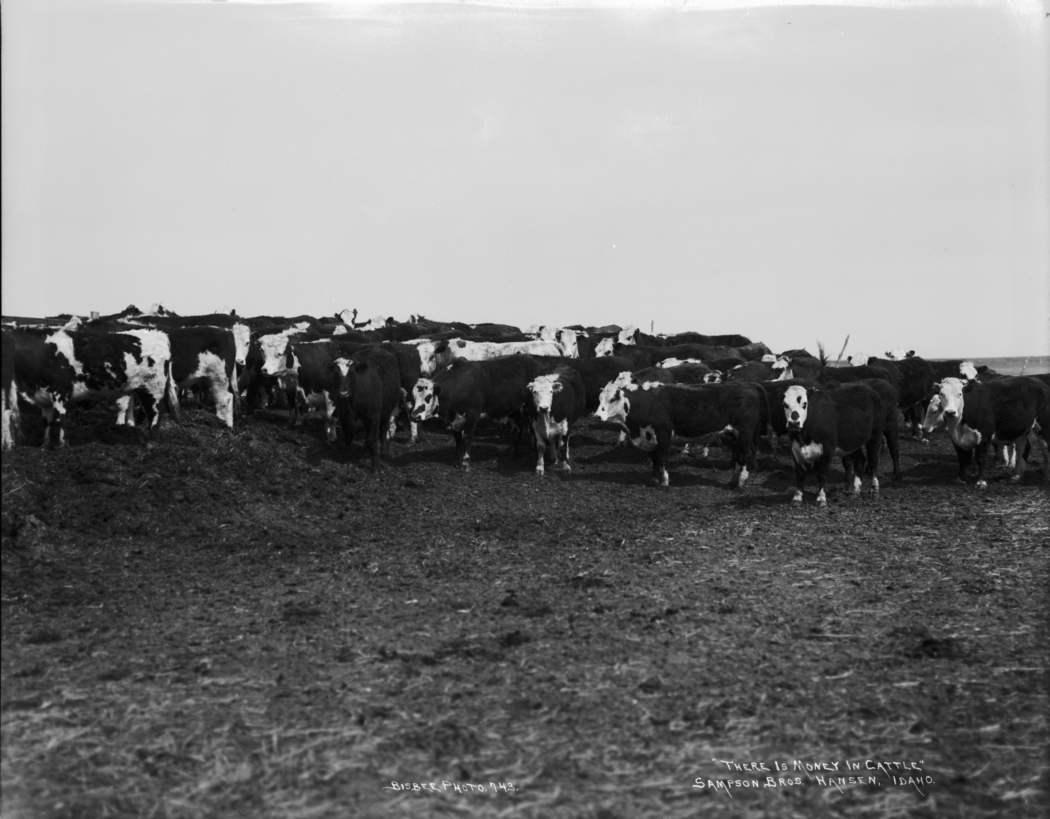 - "'There Is Money in Cattle;' Sampson Brothers. Hansen, Idaho;" herd of cows.