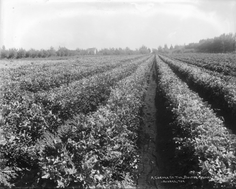 - "A Corner of the Bolton Celery Field;" rows of celery in a field surrounded by trees