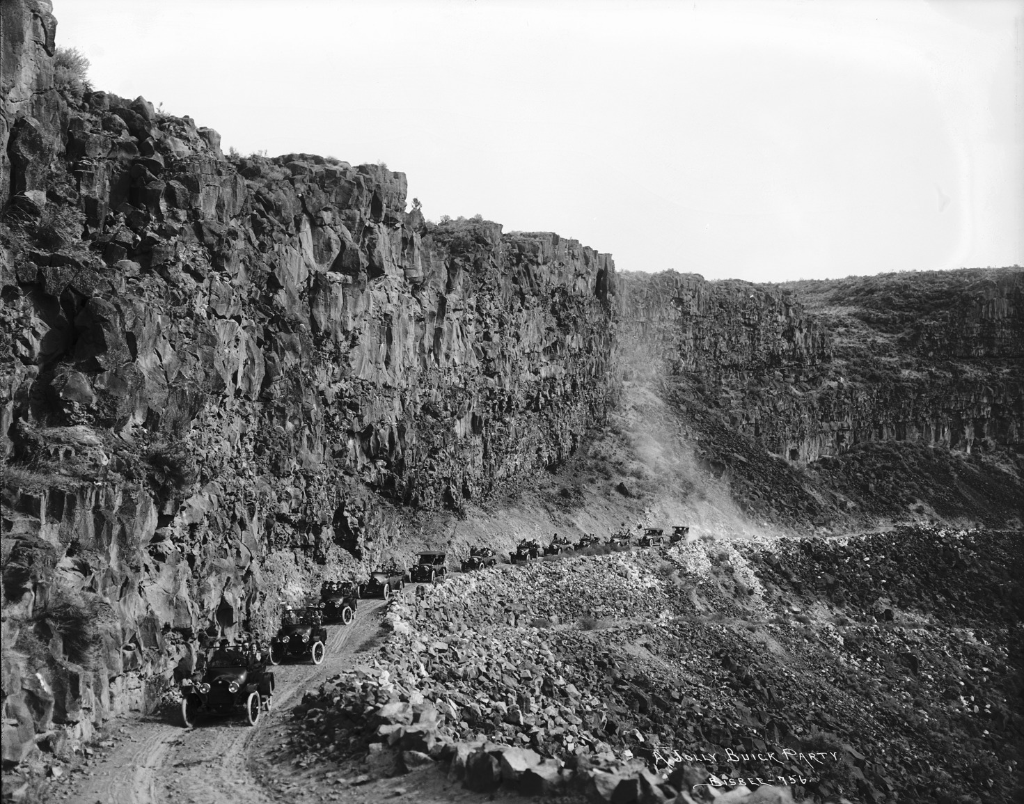 - "A Jolly Buick Party;" twelve automobiles driving down a road in the Snake River Canyon