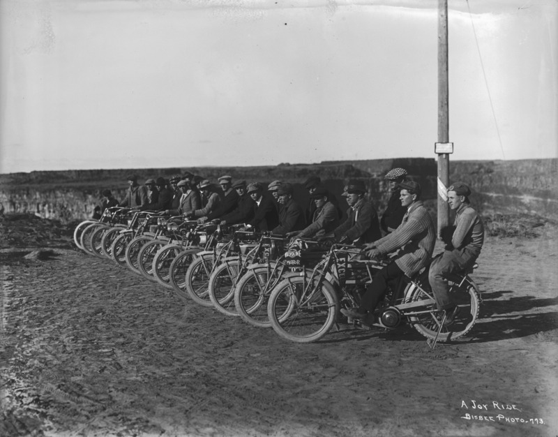 - "A Joy Ride;" line of thirteen motorcycles, with riders, near the rim of the Snake River Canyon.