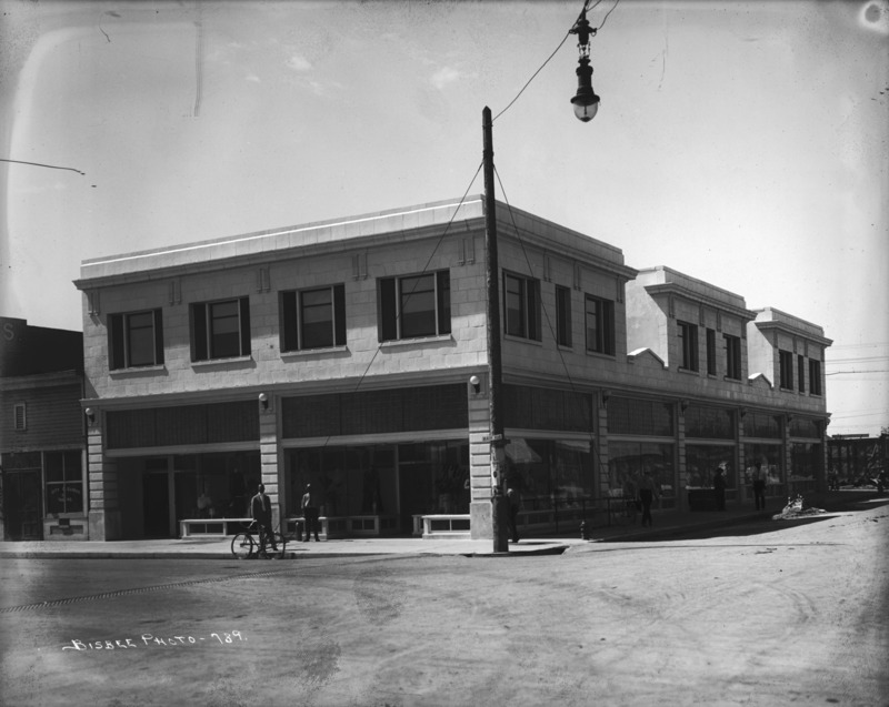 - Retail building in Twin Falls, Idaho. Two men, one with a bicycle, stand at its corner on Main Avenue South and Hansen Street.
