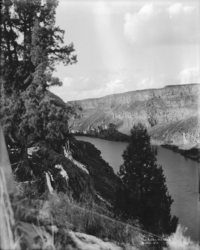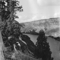 - "The River We Love;" trees on the wall of the Snake River Canyon; icy falls flowing from canyon wall