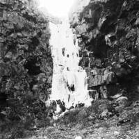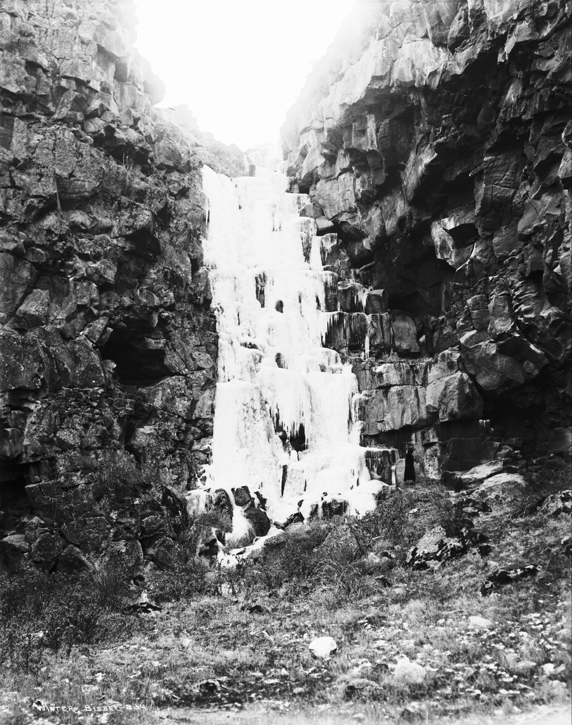 - "Winter;" frozen waterfall on the walls of the Snake River Canyon
