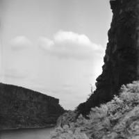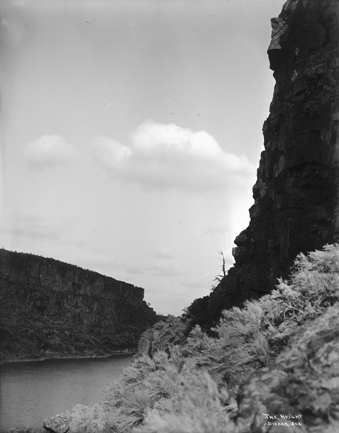 - "The Height;" canyon wall and river, sagebrush in foreground