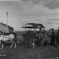 - "Twin Falls County Game;" four men with guns and a wagon-load of deer, standing in a roadway.